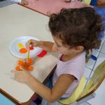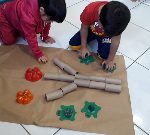 Trabalhamos com os alunos sobre a importância da reciclagem. Iniciamos com uma roda de conversa sobre os materiais que podemos reutilizar e daí surgiu a ideia  de confeccionamos um cartaz para comemorar a semana do meio ambiente com materiais recicláveis .Foi um momento de muita interação entre as crianças. Utilizamos rolinho de papel higiênico e garrafa pet, o cartaz ficou exposto para  os demais alunos.