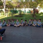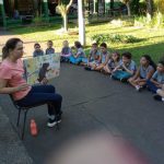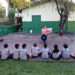 EM UMA RODA DE LEITURA A PROFESSORA CONTOU AOS ALUNOS A HISTÓRIA DO LIVRO QUE MOSTRA O QUE ACONTECEU AOS ANIMAIS DE UMA FLORESTA QUANDO FORAM A UMA FESTA E AO VOLTAREM ENCONTRARAM TUDO DESMATADO. SEM TER ONDE MORAR, PROCURARAM OS HUMANOS, MAS NÃO ABTIVERAM AJUDA, SENDO EXPULSOS POR ELES. AO FINAL, COM A AJUDA DE ALGUNS ANIMAIS “FOFINHOS”, ELESTAMBÉM FIZERAM UMA FESTA PARA OS HUMANOS, QUE QUANDO VOLTARAM ENCONTRARAM SUAS CASAS DESTRUÍDAS.