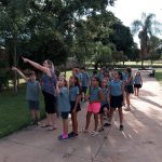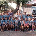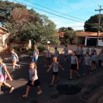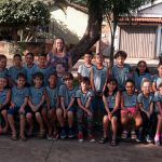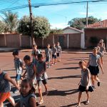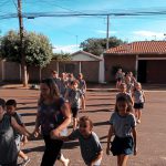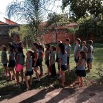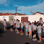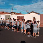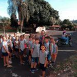Os alunos junto com a professora, saíram para realizar uma atividade de percurso, nos arredores da escola.