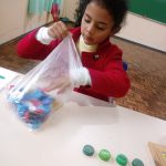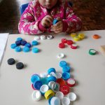 - Separar as cinco tampinhas em duas cores diferentes;