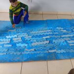 - Muito importante mostrar que todos os meios tem regras a ser seguidas. Painel com guache no fundo e colar fios nas ondas, colar areia abaixo representando a terra, trabalho coletivo .