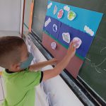 - Cada aluno irá colar o meio de transporte que coloriu em um cartaz, que possui a imagem da Terra, mar e céu. No lugar correto.