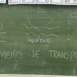 Trabalhamos os diferentes meios de transporte (aéreos, aquáticos e terrestres), explicando onde se locomove cada um deles e posteriormente fizemos a ligação com o tema trânsito, conversando sobre acidentes que acontecem nesses 3 ambientes. Para finalizar  colorimos, recortamos e colamos os meios de transporte no local correto.