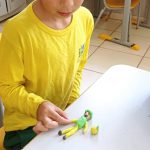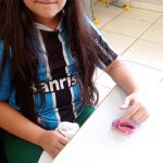 Dentre as atividades envolvendo trânsito e meios de transporte foi realizada uma pesquisa com a família sobre a profissão, local de trabalho e meio de transporte usado. Após os alunos reproduziram esta atividade com massinha, moldando o familiar e sua profissão.