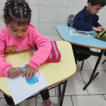 Nesta atividade foram expostos vários meios de transporte. Primeiramente cada aluno escolheu um e classificou em terrestre, aéreo ou marítimo. Depois fizeram a pintura do desenho com lápis de cor e giz de cera.