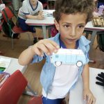 Após a história meu carro velho contado com o objetivo de atingir as necessidades do conteúdo, as crianças das turmas do Infantil IV e V realizaram a confecção do carrinho de papel (os dois moldes foram tirados da internet) . Para que a atividade fosse realizada as crianças teriam que recortar os moldes para depois colorir. No recorte e pintura partimos para a hora da dobradura, onde nela montamos um molde do veículo Volkswagen Kombi.
