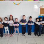 A professora Julie trabalhou com os alunos do pré II A sobre os meios de transporte. Após explicação os alunos nessa atividade pintaram o ônibus e nas janelas eles colaram os rostos dos colegas que eles levariam em um passeio de ônibus.