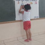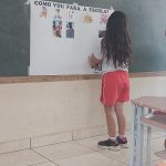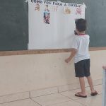 No momento de contação de história (O trânsito no mundinho) as crianças ouviram atentamente a leitura do livro pela professora e ao final participaram fazendo vários comentários. Concluímos o projeto com a confecção de um cartaz coletivo. Cada criança trouxe uma foto de seu trajeto à escola para a realização da atividade.