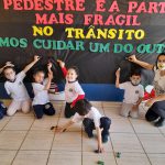 Para trabalhar o trânsito na pré escola, conversamos sobre os meios de transportes que fazem parte do trânsito. Depois mostrei uns flashcards para ensinar a pronúncia, pedi para separar aquilo que era meio de transporte na caixa de brinquedos. Onde eles pegavam e falavam a pronúncia em Inglês.