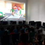 Dando continuidade as sequencias de atividades para a conscientização de um trânsito seguro com os alunos do 1° ano, agora foi a vez do cineminha com o filme Segurança no trânsito. Após o cineminha realizamos um pate-papo debatendo as atitudes dos personagens no filme.