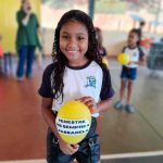 Desenvolvimento: Os alunos receberam bexigas com mensagens relembrando as principais regras de trânsito.