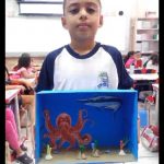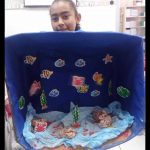 Os alunos foram convidados a construir maquetes representando o fundo do mar, utilizando materiais diversos, incluindo recicláveis, para representar animais marinhos, plantas aquáticas e elementos naturais.