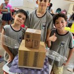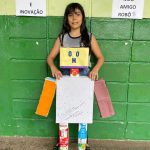 OS ALUNOS DO 4º ANO, ATRAVÉS DE SUCATAS TRAZIDAS DE CASA CONSTRUÍRAM EM GRUPOS SEU AMIGO ROBÔ.