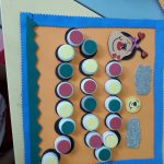 Na sala de aula, trabalhamos com a sequência de cores do semáforo (vermelho, amarelo e verde) através de um jogo de tabuleiro e tampinhas com as cores.