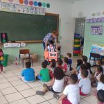 Durante a integração semanal, realizamos uma conversa informal com os alunos sobre o semáforo e sua função, passando informações e esclarecendo algumas dúvidas. Citamos alguns exemplos em que os alunos pudessem refletir e adquirir os conhecimentos necessários para distinguir qual a “ordem” de cada cor. Vermelho-pare, amarelo-atenção e verde-siga. Encerramos com uma música sobre o semáforo. (quando saio a passear)