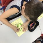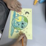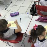 Após conversar com os alunos sobre a importância da água e maneiras de como economizar, os alunos pintaram o desenho com o Mundo e as torneiras pingando, representando o desperdício de água.
