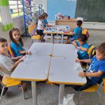 Refletindo sobre qual conto ser aprofundado a professora escolheu o “João e o pé de feijão” e a partir dele criou diversas atividades e uma delas foi o plantio de feijão, então a professora dividiu a turma em quatro grupos, no primeiro seria o plantio, no segundo manipulariam com massinha, no terceiro montavam com prendedores e palitos e o último criaram com peças de encaixe.