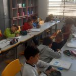 Na aula de hoje, as crianças fizeram o seu semáforo, conforme as cores indicadas. Colei um desenho com as cores escritas, junto com um guarda de trânsito. Os alunos desenharam o semáforo seguindo a ordem das cores, foi uma aula produtiva.