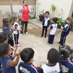 Os alunos da professora Cleusa, alunos da educação infantil, confeccionaram uns volantes, e foram brincar, que estavam dirigindo pelo pátio da escola.