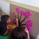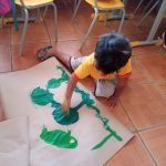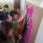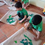 Em seguida os alunos foram orientados para  construir um  painel coletivo das árvores utilizando colagens e diferentes técnicas de pintura. Para fechar o tema cada aluno recebeu uma mudinha de árvore para levar para plantar no quintal de casa junto com a família.