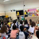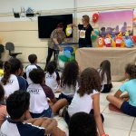 Desenvolvimento: Após a leitura do Gibi, os alunos puderam refletir sobre a história e sobre os aprendizados adquiridos com o fantoche Zé Quest. De maneira lúdica e divertida recordaram a história e colocaram em prática os conhecimentos sobre o trânsito.