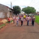 Em passeata os alunos distribuíram panfletos e colaram cartazes em vários pontos do bairro (posto de saúde e comércio em geral), a fim de alertar a população sobre como adquirir hábitos e atitudes que colaborem para acabar com a proliferação desse mosquito.