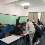 A professora iniciou a aula falando sobre o projeto Arteris e sobre o mês de maio onde a escola estará fazendo oficinas para conscientização e reflexão, sensibilização quanto a prevenção de acidentes  e violência no trânsito. Passou vídeos explicativos, houve roda de conversa, distribuiu mensagens para as famílias e a toda comunidade escolar.