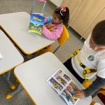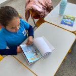 As expressões faciais das crianças mostraram a concentração e envolvimento, e as ilustrações claras ajudaram a fixar conceitos importantes, como a importância de para no sinal vermelho e usar cinto de segurança.