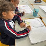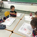 A professora Patrícia da turma da Educação infantil, e 1° e 2° anos, contou para os alunos a fantástica história do carrinho Vrum…