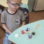 Como um momento de distração e exploração criativa, os alunos participaram de uma atividade em que montaram torres utilizando tampinhas de garrafa e palitos de sorvete.
