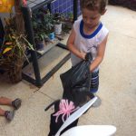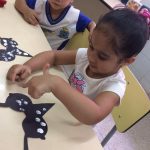 As crianças confeccionaram um mosquito da dengue com um rolinho de papel higiênico e uma máscara, sendo que após isso, eles puderam vivenciar a experiência de ser um mosquito, e os malefícios que este pode ocasionar a saúde humana.