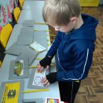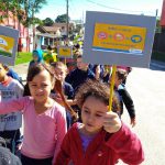 Após construir junto com as crianças plaquinhas que serão utilizadas na caminhada que irá fechar o Movimento Maio Amarelo em nossa Escola.