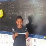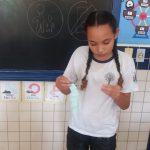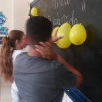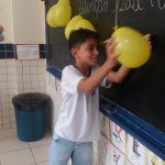 Cada um escolheu uma bexiga com a pergunta e responde, quem acerta ganha e ensina multiplicando esses conhecimentos em casa e na sua comunidade.