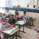 Alunos do 5º ano B, responderam e debateram questões sobre o trânsito.