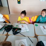 A professora construiu um um cartaz com os alunos.