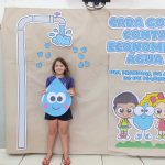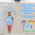 Como culminância, os alunos foram convidados a posar para uma fotografia individual e depois coletiva em frente ao painel, simbolizando o compromisso de cada um com atitudes responsáveis. O mural, cuidadosamente elaborado, trazia a mensagem central: “Cada gota conta, economize água”, reforçando a ideia de que pequenas ações fazem grande diferença.