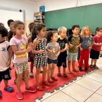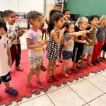 A TURMINHA DO JARDIM I APRENDEU A MÚSICA : PARE OLHE E SIGA AS REGRAS DE SEGURANÇA, NA SALA DE VÍDEO FEZ A COREOGRAFIA.