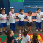 Incentivamos conscientização das crianças sobre  os benefícios da reciclagem,  reaproveitamento de materiais para criar novos, nesta atividade os alunos com auxílio  das professoras produziram chocalhos com garrafas e sementes e depois exploraram o som livremente.