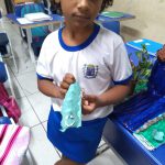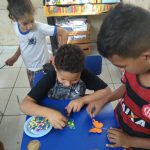 Então, realizamos a  confecção   do planeta Terra com pratinhos descartáveis.  Conscientizando sobre a importância de preservar – lo.