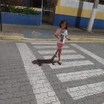 Aqui temos a criança que no bairro onde ela mora tem a faixa de pedestre, então ela está passando pela faixa. Queremos que às famílias participem desse momento que as crianças levam da escola para a casa deles, passando pela faixa de pedestre, à mãe tirou a foto envolveu algo que foi trabalhado na escola que fará uma transformação na vida de todos.