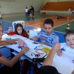 Jogos como os da memória, com o objetivo de encontrar os pares e identificar as placas de trânsito. Frases informativas escritas e impressas, que foram entregues para funcionários, pais e convidados para a culminância do projeto. Antes foi realizada a leitura e entendimento de cada uma dela.