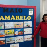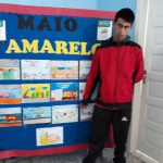Entre as causas mais comuns de acidente com morte estão a desatenção do motorista, excesso de velocidade, a ingestão de álcool e a desobediência à sinalização(G1.globo.com). É preciso uma mudança de comportamento para reduzir as mortes no trânsito.Pequenas atitudes podem fazer toda a diferença quando o assunto é segurança.Incentivar hábitos simples como usar o cinto de segurança, manter distância do veículo à frente, atravessar nos locais corretos.Por meio de vídeos educativos, foi mostrado e discutido sobre o conteúdo da Campanha Maio Amarelo/2019. Proposto também, aos alunos uma discussão sobre o vídeo assistido, para que pudessem expôr suas experiências.Em seguida realizaram desenhos para confecção de um folder, para ser entregue à comunidade.Montagem de um mural com os seus desenhos.