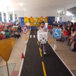 Num outro momento, solicitei apoio dos pais para que confeccionassem carrinhos com caixas de papelão para fazermos um desfile de carros e um aulão prático de segurança no trânsito para todas as turmas da escola. Em língua portuguesa realizamos produções de textos e produção de frases sobre o tema. Na matemática trabalhamos com gráficos e estatísticas de acidentes no trânsito por falta de atenção dos motoristas. Em geografia as regiões da Arteris Régis Bitencourt que tem mais acidentes com pedestres que não utilizam as passarelas.