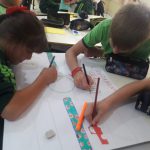 Após essa boa base os alunos confeccionaram cartazes com desenhos e frases sobre o mesmo, confeccionaram também um jogo sobre as cores do semáforo , em uma cartolina foram feito diversos círculos , seis deles foram coloridos de azul , seis de vermelho e seis de amarelo o restante foram coloridos de cores diversas, a turma foi divida em duas equipes , utilizando seis copos descartáveis um integrante de cada equipe ao sinal da professora , tinha como desafio encontrar os seis círculos da cor escolhida na rodada mais rápido que seu adversário, após serem encontradas eles colocam os seis copos em cima das seis cores, depois de todos os integrantes participarem , a equipe que acumular mais pontos vence.