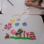 Após saímos para área externa da escola e observamos os elementos da natureza que ajudam todos os seres na sua sobrevivência, em outro momento confeccionamos um cartão com árvore onde as crianças puderam brincar com o cartão na saída da área externa da escola e usamos também massinha de modelar para fazer uma paisagem em folha após retornar para sala de aula.
