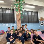 Ao final, a árvore ficou exposta na sala, tornando-se um símbolo do crescimento, união e aprendizado coletivo, além de incentivar e valorizar o trabalho feito pelas crianças.