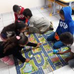 Brincando ”na cidade” com carros e personagens, os alunos colocaram as placas de trânsito e semáforos onde julgaram necessário e em seguida discutimos se as mesmas respeitavam as regras de trânsito.