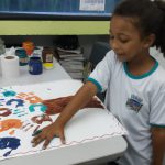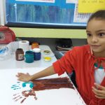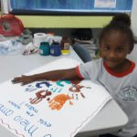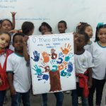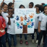 Tendo como objetivo trabalhar o meio ambiente, a professora Roberta do primeiro ano, após conversa informal, trabalhou com seus alunos uma pintura utilizando cartolina, tinta, e a própria mãozinha da criança, alertando sobre a necessidade de preservarmos o nosso meio ambiente.s crianças confeccionaram uma árvore utilizando as mãos sujas de tinta.