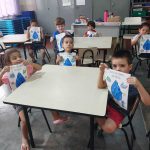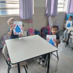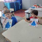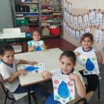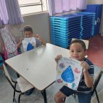 A professora Rita trabalhou com os alunos a importância da água e o uso correto através de atividades diversificadas utilizando músicas, gestos e movimentos. Com o carimbo das mãos, os alunos se divertiram e aprenderam como a água é importante no nosso dia a dia e como deve ser utilizada sem desperdício.