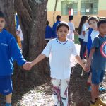 Trabalhamos as questões ambientais, ressaltando a importância do cuidado com o lixo. Após várias conversas, debates e opiniões chegaram à conclusão que o bosque era o lugar predileto de todos e, portanto, deveriam cuidar bem dele. Além da coleta seletiva, eles imaginaram como ficaria a árvore que abraçaram, pois, é a que mais serve de esconderijo, pique, casinha, etc. e tudo mais que a imaginação deles permitir.